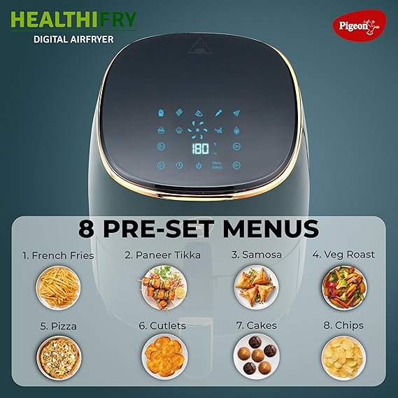 • Bring your family together with the Pigeon HealthiFRY Digital Airfryer, the ultimate solution for healthier, faster, and more convenient cooking, creating delicious memories and fostering a love for wholesome cooking among all family members – enjoy guilt free healthy snacks!