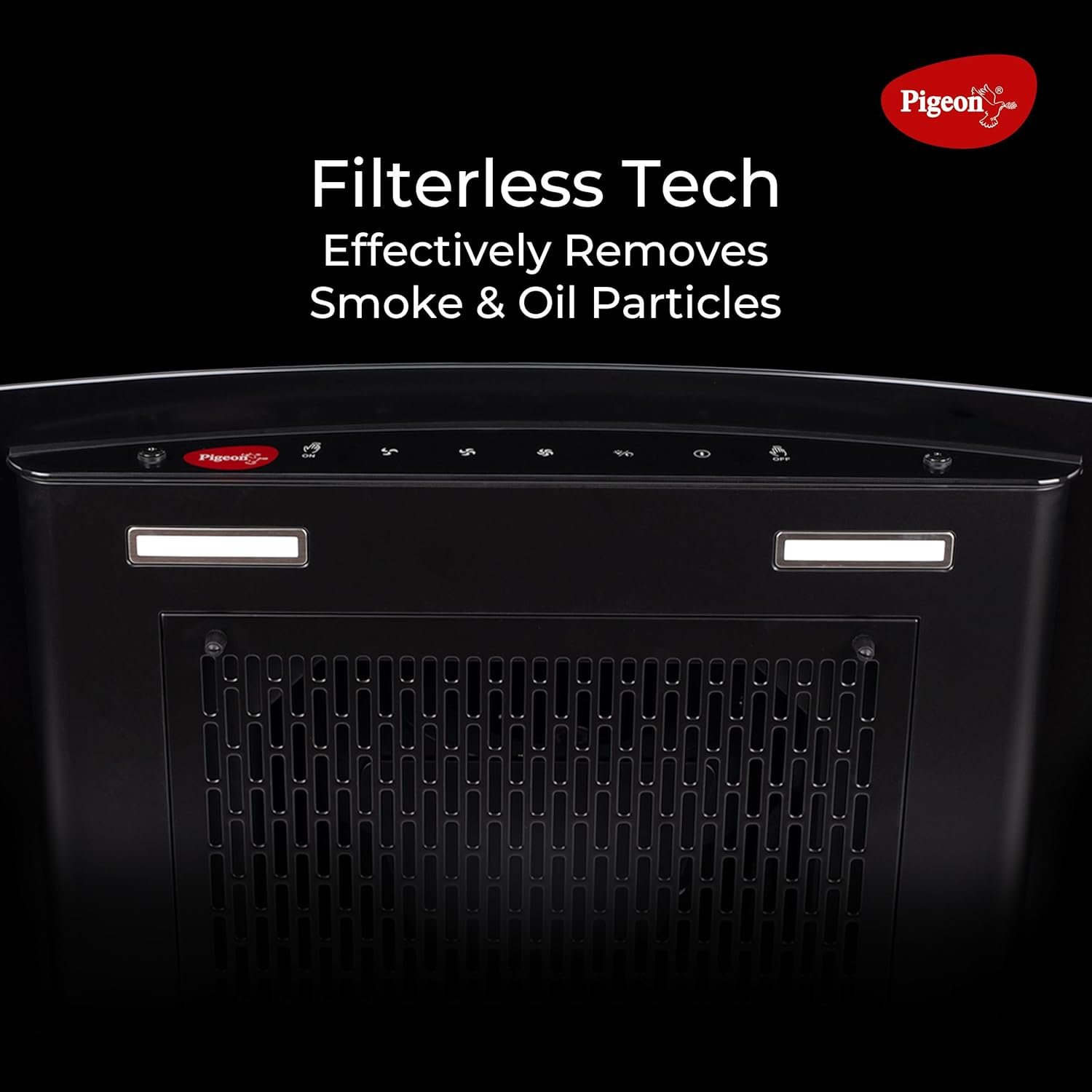 • Filterless technology ensures powerful suction capacity, it draws in the unhealthy smoke and oily fumes more efficiently and keeps your kitchen smoke free.