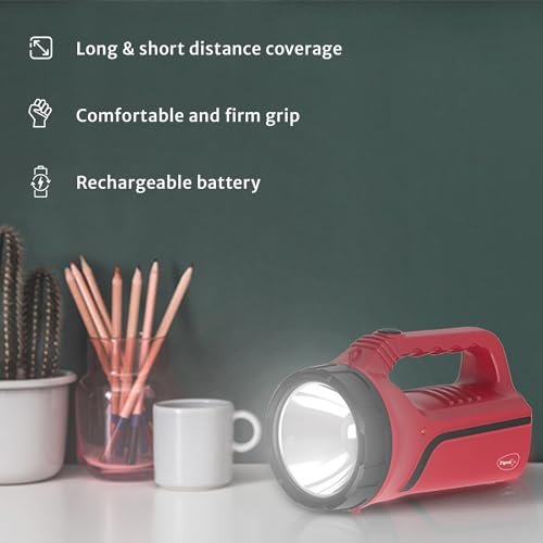 【POWERFUL HANDHELD SPOTLIGHT】A Powerful long beam spotlight can be used as searchlight while trekking outside or tent light for extra brightness. LARGE CAPACITY BATTERY 】This LED handheld spotlight is made with a long-lasting, rechargeable 2000 mAH battery. Stop searching for batteries that are never there when you need them. A full charge can last 4 hours at high mode or 14 Hours at low mode. 【Powerful LED】With 3 W LED light, this torch lamp can be used for trekking in nights, searchlights, car repair, or even when you are taking a long walk with your pet. Now have comfortable and firm grip on your light thanks to specilly designed handle of Rigel Emergency Lamp. The outer body is made using plastic material which is durable and absolutely maintenance-free. The ergonomic handle at the top make easy to carry from one room to another. Inbuilt small coverable cabinate for storing cable keeps charging cable handy always and ready to charge when ever requried