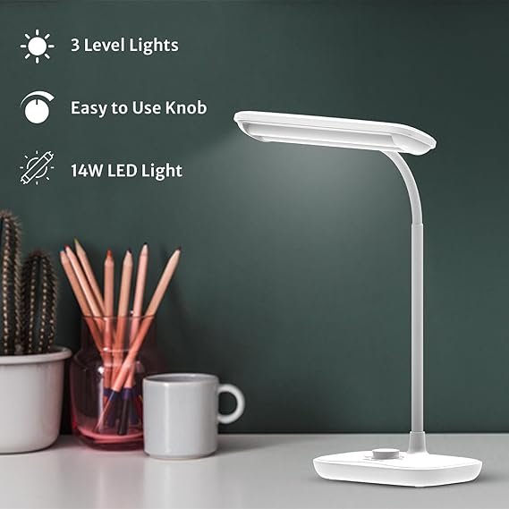 • 【3 Color Modes White Desk lamp 】:This eye protection LED lamp with USB charging interface has three color modes,natural light ,soft light ,white .No flicker,no dark areas,protect your eyes.