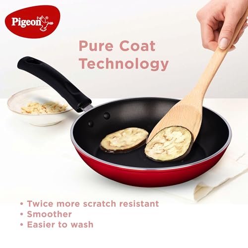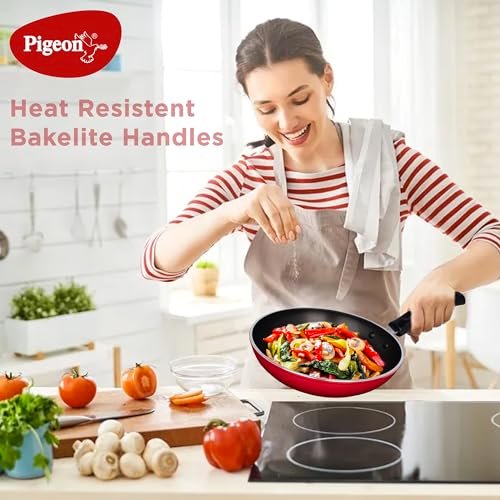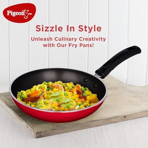 Perfect for searing, browning and deep frying everything from vegetables to meat and making fluffy omelets, this Non-Stick Fry Pan from Pigeon makes it easy to toss or flip it with a spatula. Boasting of a 4 mm thick aluminium body, this frying pan comes with a thermocore base for even and quick distribution of heat throughout the surface.