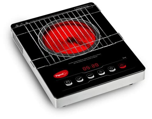 Pigeon Eva Infrared Cooktop 2000 Watts Black (with Free Stainless Steel Grill, Full touch Panel, Auto shut off and Overheat Protection)