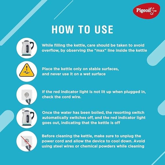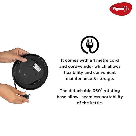 You can easily make tea, coffee, instant noodles, and more with the help of the Pigeon Favourite Electric Kettle. With its easy-grip cool-touch handle, this electric kettle enables you to pour your beverages easily and comfortably. Thanks to its power consumption of up to 1300 W, this electric kettle offers optimal performance while conserving energy.