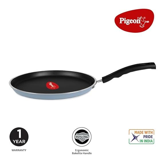 The triple layer Stonehenge coating from GREBLON Company ensures superior non-stick release of food and also offers easy-to-clean benefits to the user. Being scratch-resistant, this tawa can withstand years of abuse by metal utensils. The Pigeon Non-Stick Special Flat Tawa is designed with a non-induction bottom making it ideal for use on gas stoves