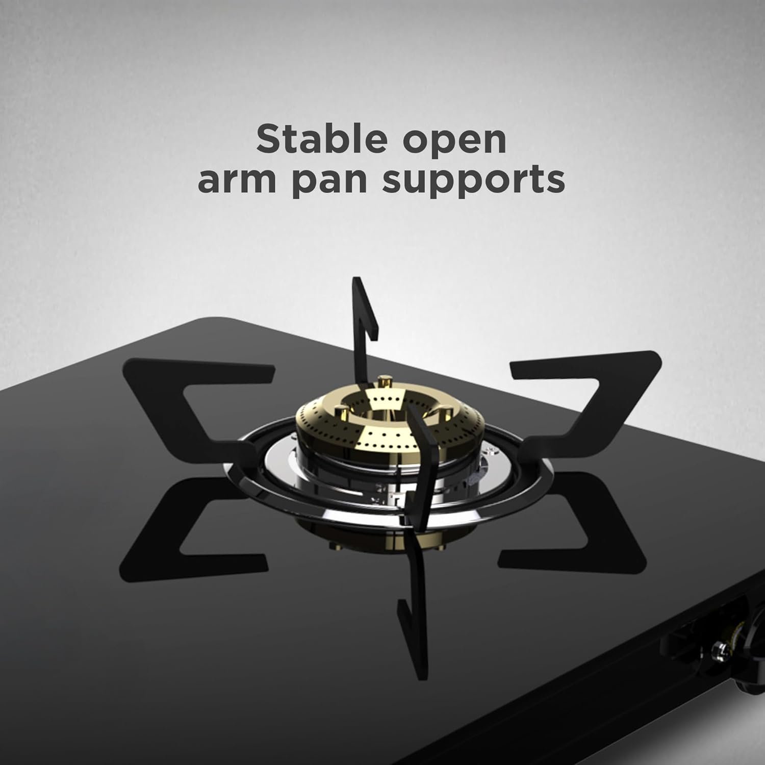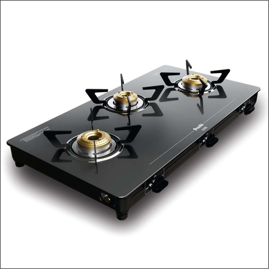Preethi Luxe comes with a unique infinity glass design which ensure maximum cooking spills fall on glass making it easy to clean. It comes with a sleek and stylish look that fits into any kitchen.It has a stylish and sturdy open arm pan support. It has 3 burners – one small & two big burner and has a patented ant guard jet which ensures consistent blueflame everytime