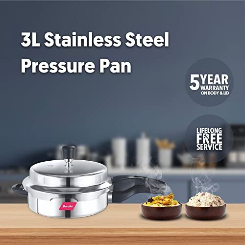 Preethi Stainless Steel Pressure Cookers are made with High Grade SS 304 stainless Steel for both the lid & he body with 1 mm thickness ensure safe & efficient performance