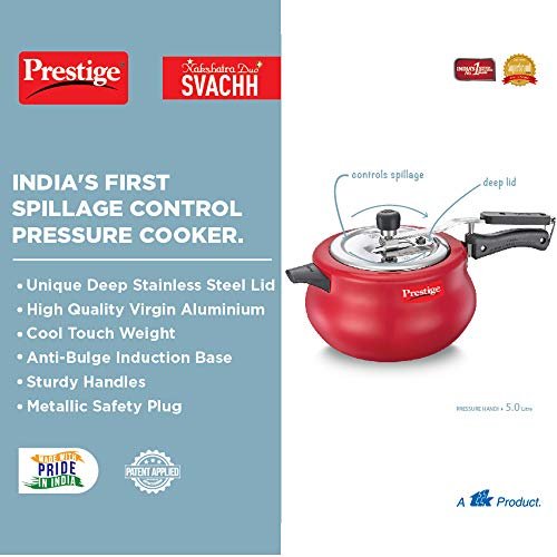 Bring home a handi that helps you keep the kitchen clean and safe. The Nakshatra Duo Plus Svachh Pressure Handi is designed to last longer and comes with a unique stainless steel lid that contains any spillage that might occur during the course of cooking and prevents the messy liquid from dripping down.