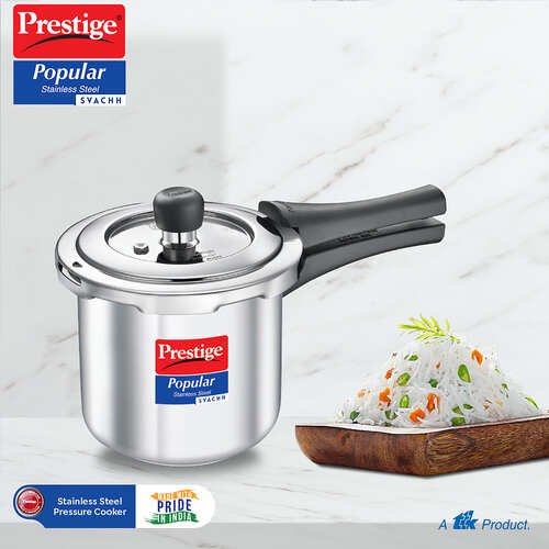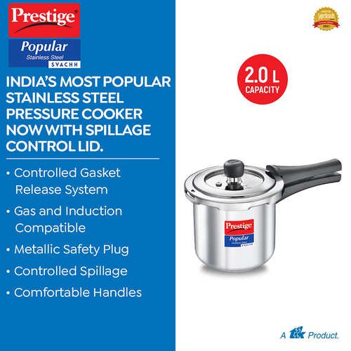 The Prestige Popular Svachh Stainless Steel Pressure Cooker brings the best cooking experience to your kitchen. Its unique design helps you cook faster, and the innovative Deep-lid keeps your kitchen clean, at the same time. This pressure cooker comes with an induction base and a host of other top-of-the-line features. Perfected over a period of time with the trademark Prestige engineering, expect the very best with up-to-date innovations and features