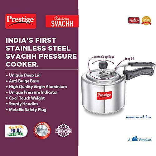Bring home a cooker that helps you keep the kitchen clean and safe. The Prestige No-Mess cooker comes with a unique lid that contains any spillage that might occur during the course of cooking and prevents the messy liquid from dripping down. Revolutionize your cooking experience with this unique pressure cooker