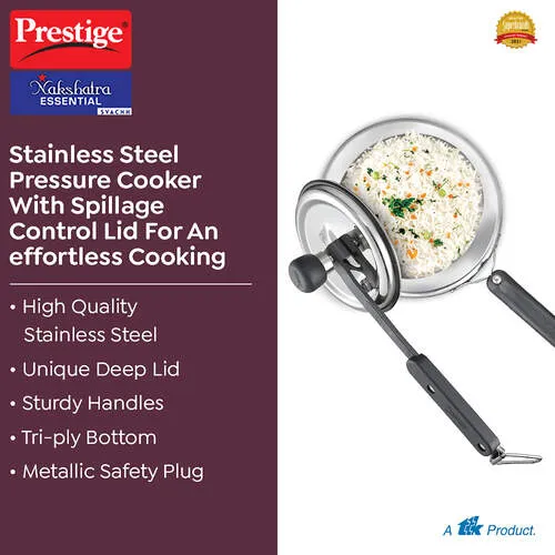 The all new Prestige Nakshatra Essential Svachh stainless steel pressure cooker is designed and engineered to last longer.