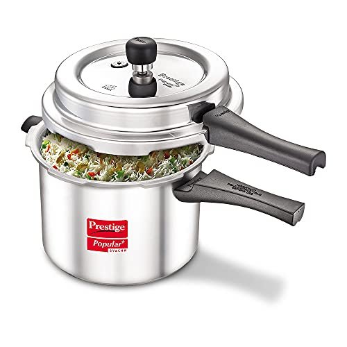 The Prestige Popular Plus Svachh Aluminium Pressure Cooker brings the best cooking experience to your kitchen. Its unique design helps you cook faster, and the innovative Deep-lid keeps your kitchen clean, at the same time. This pressure cooker comes with an induction base and a host of other top-of-the-line features. Manufactured from Virgin Aluminium to ensure zero contamination, the cooker boasts of high quality raw materials