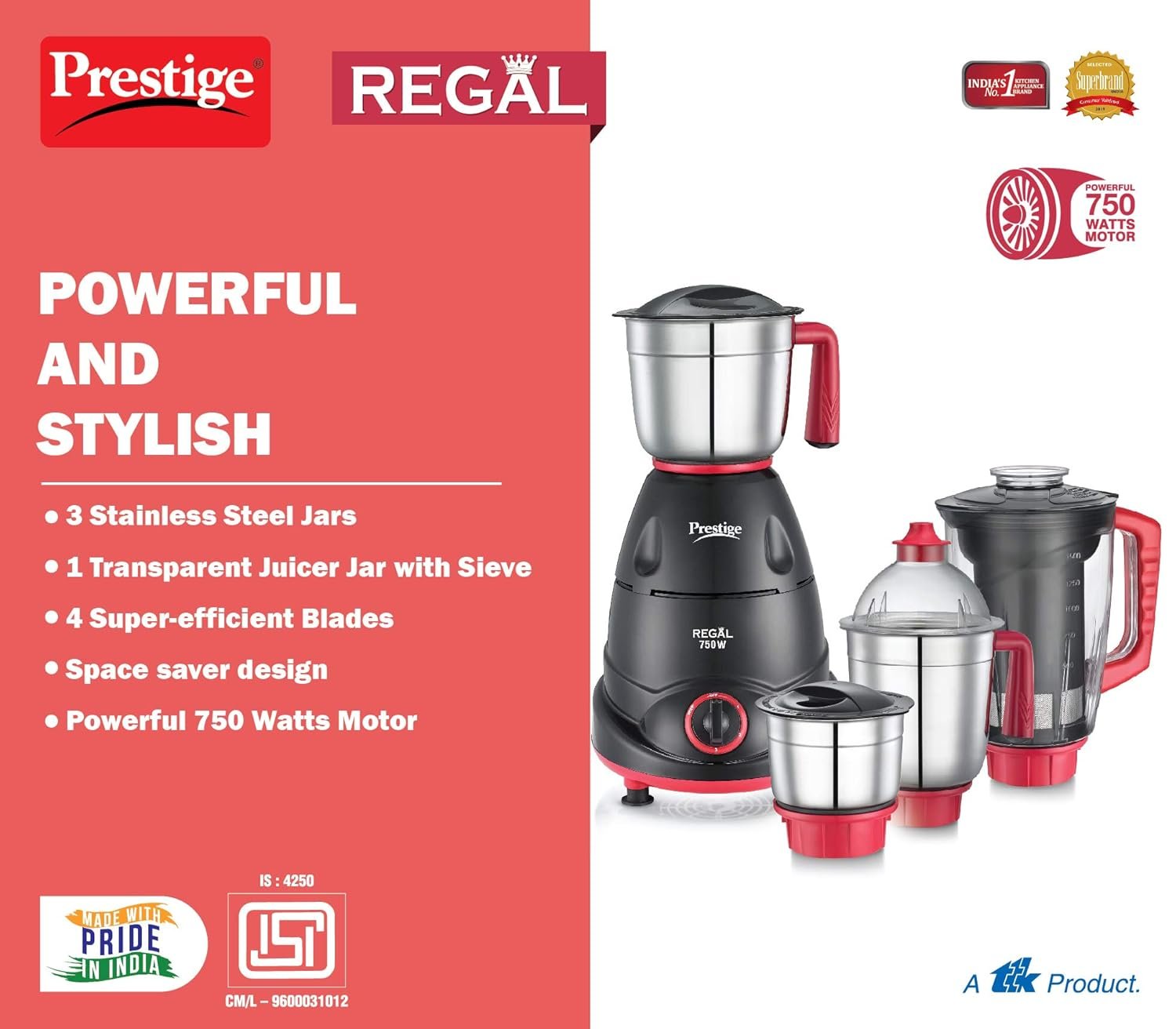 PRESTIGE MIXER GRINDER – REGAL 750W 4JAR