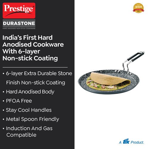 Here’s yet another winning cookware ensemble from Prestige – Durastone. This hard anodised stone finish cookware boasts of a unique design that compliments your kitchen interiors. The highlight is a stone finish with non-stick coating that enhances the products appearance. It is powered with extra thick pans for even heating and durability, resulting in a trouble-free performance and elegant looks, for life