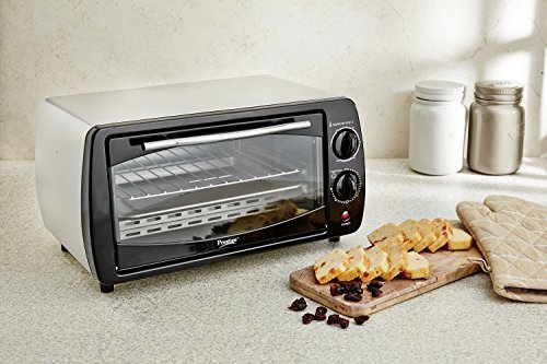 Content: Prestige Oven Toaster Griller 9L -Potg 9 Pc ; Have a great tea time! — With your Prestige Oven Toaster Griller you can prepare lip-smacking delicacies such as roast papad, cheese toasts, bread toast, baked vegetables, and much more Heat-resistant handle : Yes,Maximum Timer Limit : 60 min , Net Quantity: 1 Unit.Auto Thermostat:Yes Voltage: 230V; Wattage: 800W Capacity: 9 litres, Suitable for 2-3 people Cooking capability: Baking, Grilling, toasting Warranty: 1 year Includes Oven toaster grill, Instruction manual and Warranty card