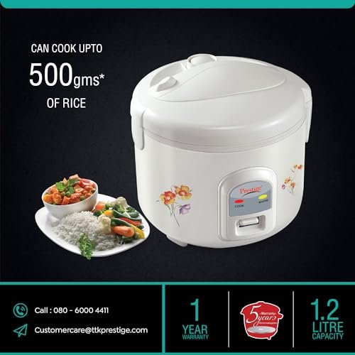 Prestige Prwcs 1.2 500-Watt Electric Rice Cooker (White), 1.2 Liter