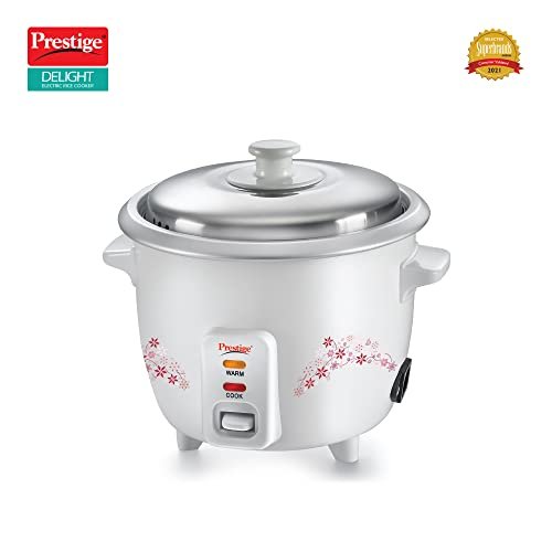 Prestige Delight PRWO 1.5 L Electric Rice Cooker|Detachable power cord|Durable body|Cool touch handles|White| Raw capacity-0.6L|Cooked capacity-1.5 L|Cooks for a family of 4 to 5 members