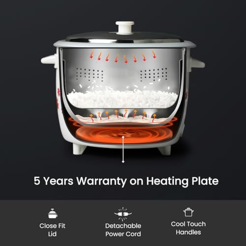 Content: Prestige Delight Electric Rice Cooker (1.8 Open Type with Aluminium Cooking Pan-2U) Net Quantity: 1 Unit.Voltage : 230 V Voltage: 230V; Wattage: 700W Warranty: 1 Year Troubleshooting guidelines: Do not wash the main body of cooker or immerse it in water. Its electrical insulation may get damaged. Read user manual carefully before use