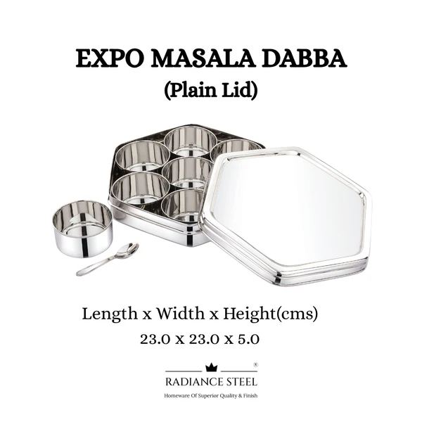 Comes with 7 inner containers for essential spices like cumin, turmeric, chili, and garam masala