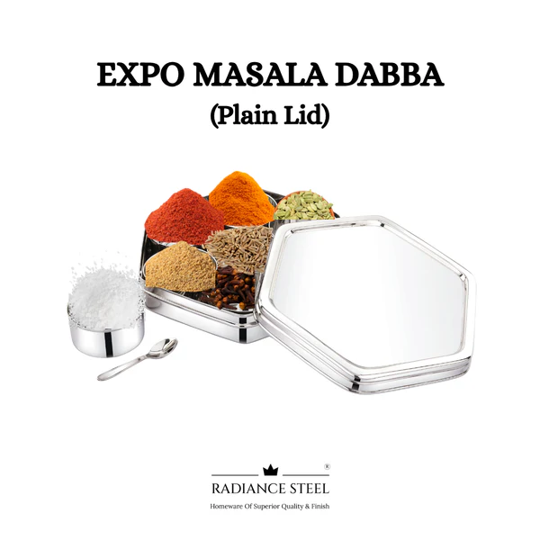 Hexagon-shaped stainless steel masala dabba for organized spice storage