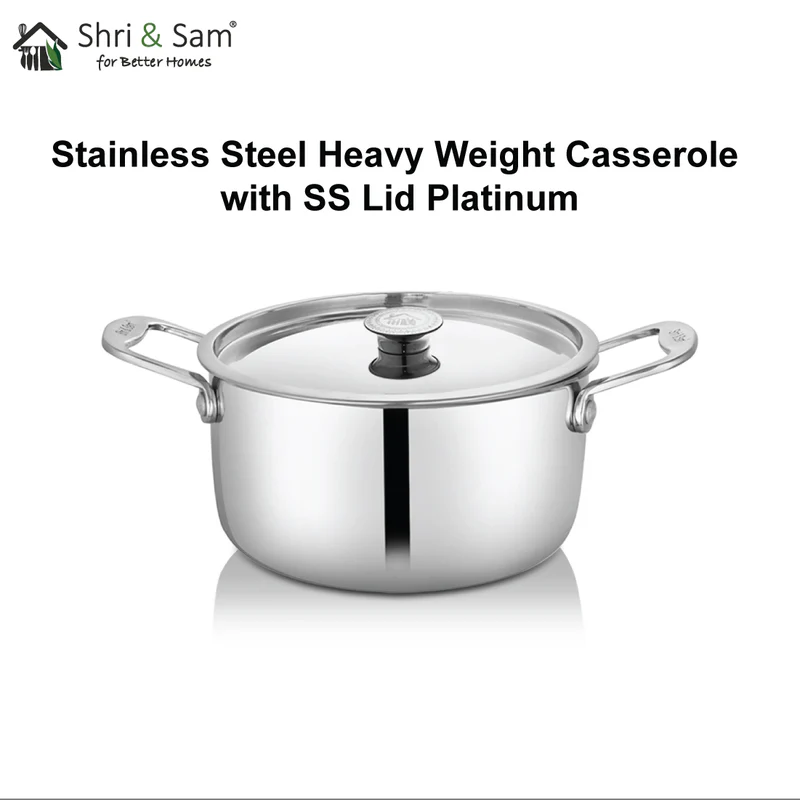 This Shri and Sam Heavy Weight Platinum Casserole is perfect for everyday cooking as it is durable and rust-free. This Casserole is made from 430 stainless steel series which helps the casserole work on all heating sources. It basically means this is healthy for cooking. This casserole is simple in looks yet elegant which is why it will suit any type of kitchen or any type of cooking style.