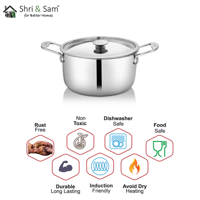This Shri and Sam Heavy Weight Platinum Casserole is perfect for everyday cooking as it is durable and rust-free. This Casserole is made from 430 stainless steel series which helps the casserole work on all heating sources. It basically means this is healthy for cooking.