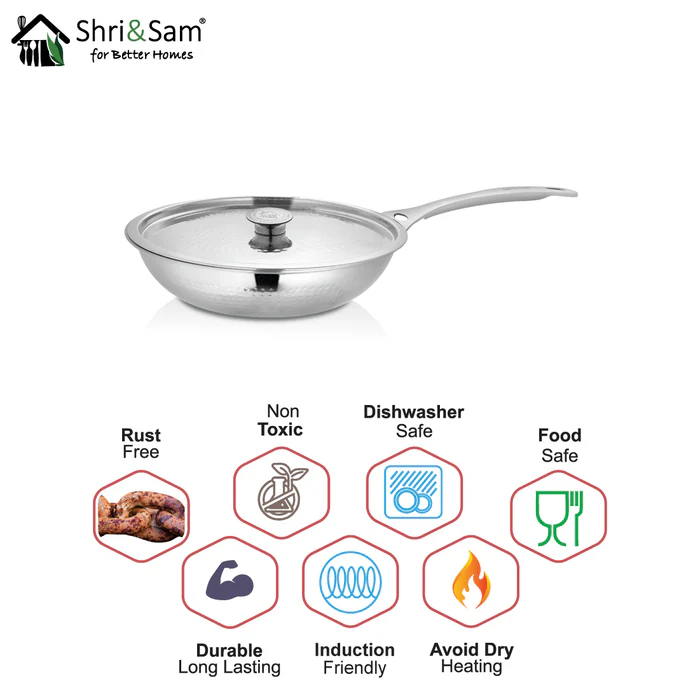 Platinum Series by Shri and Sam is highly durable and rust-free. This product is made from premium quality 430 stainless steel, it is Food Grade and Food Safe. This Frypan is in a shiny finish which will make it suit any type of kitchen counter. This Fry Pan also comes with a stainless steel lid for all types of cooking processes.