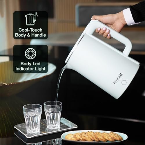 Tesora Electric Glass Kettle | Borosilicate Glass Body with Cool Touch PP Sleeve |1.5 Liter Capacity | 1350 Watts | Overheating & Boil Dry Protection | White | 1 Year Warranty by Tesora