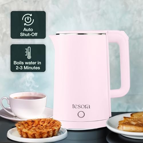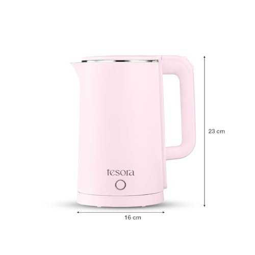 ✅BOROSILICATE GLASS BODY AND COOL TOUCH OUTER SLEEVE: The Electric Glass Kettle is part of our fine collection, featuring a premium finish, food grade borosilicate glass body, and cool touch outer sleeve for a functional and attractive addition to your kitchen. ✅SAVE TIME AND ENERGY: It uses advanced heating technology to ensure efficient and fast boiling, reducing the waiting time for hot water. Additionally, its efficient design conserves energy and thus helps lower your electricity bill. ✅CORDLESS KETTLE – Pick up, pour, put back! You can remove the Cordless Kettle hassle-free from the 360° swivel base when pouring your beverage and place it back on it at any angle. ✅LARGE CAPACITY: It is perfect for frequent use with a capacity of 1.5 litres. ✅ WIDE MOUTH AND EASY ACCESS SPOUT: The wide mouth makes it easy to fill and clean the kettle, while its easy access spout is designed to avoid spillage while pouring. ✅CONCEALED HEATING ELEMENT: Tesora’s Electric Glass Kettle’s heating element is concealed and not exposed like many other kettles. It is thus safe to use. ✅BOIL-DRY AND OVERHEAT PROTECTION: The kettle shuts down when there is no liquid in it to avoid burning of the coil, and prevents overheating, thus protecting the appliance.