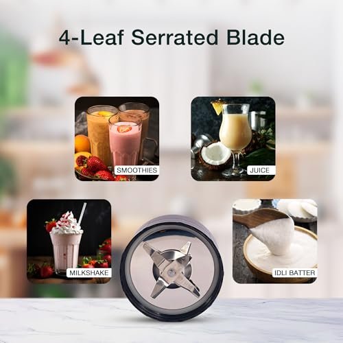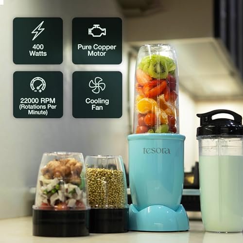 ✅ Performance and Looks: Nutri-Flash Mixer, Grinder Blender is one of the most premium-looking kitchen appliances with a powerful 400W, 22000 RPM motor that helps in the hard grinding of spices, masalas, and chutneys, and making smoothies, juices, milkshakes, and cold coffee. ✅ Stainless Steel Blades: Both the jars consist of stainless-steel blades; one serrated blade for powerful grinding and one cross blade for blending. ✅ Detachable Base: Tesora Nutri-Flash comes with blades that have detachable bases for easy cleaning. ✅ Safety: Its safety interlock mechanism makes it one of the safest devices to use. It won’t start until the jar Is fixed properly. ✅ Overheat Protection: Tesora Nutri-Flash has a thermal overload protector which prevents the motor from burning by shutting it down automatically in case the motor temperature rises due to excess use. ✅ Accessories Included: It comes with 300ml and 700ml containers, and a to-go lid, so you can carry a beverage along or store it properly in the fridge. ✅Warranty-Servicing: Tesora provide 1 year warranty on all manufacturing defects And Pan India customer service as per the mentioned manufacturer details.