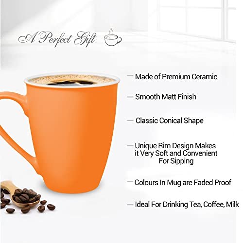 Color: Orange; Material: Ceramic; Package Contents: 1 – Piece Lisse-Lip Ceramic Mug (340 ml); For any queries kindly reach customer care number as mentioned on the product packaging along with the proof of purchase. Classic Conical shape made of premium Ceramic in smooth matt finish. Unique Rim design makes it very soft and convenient for sipping of Tea, coffee, smoothies. Enough space between the handle and the cup for easy grip, So comfortable in the hand that makes the tea and coffee taste even better. Easy to serve with this mug. Easy to store, occupying less space in cupboard. Easier to grip than regular serving mug.