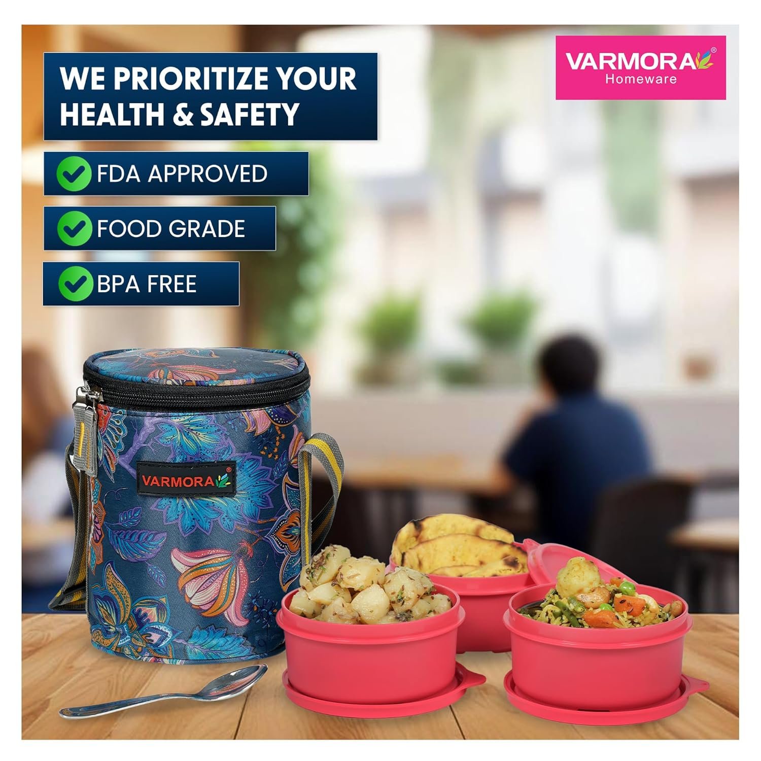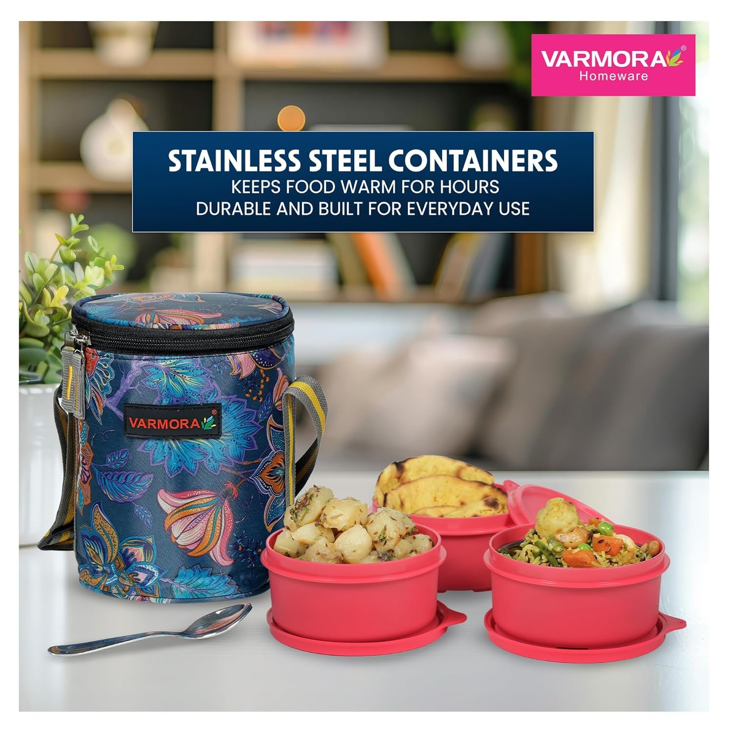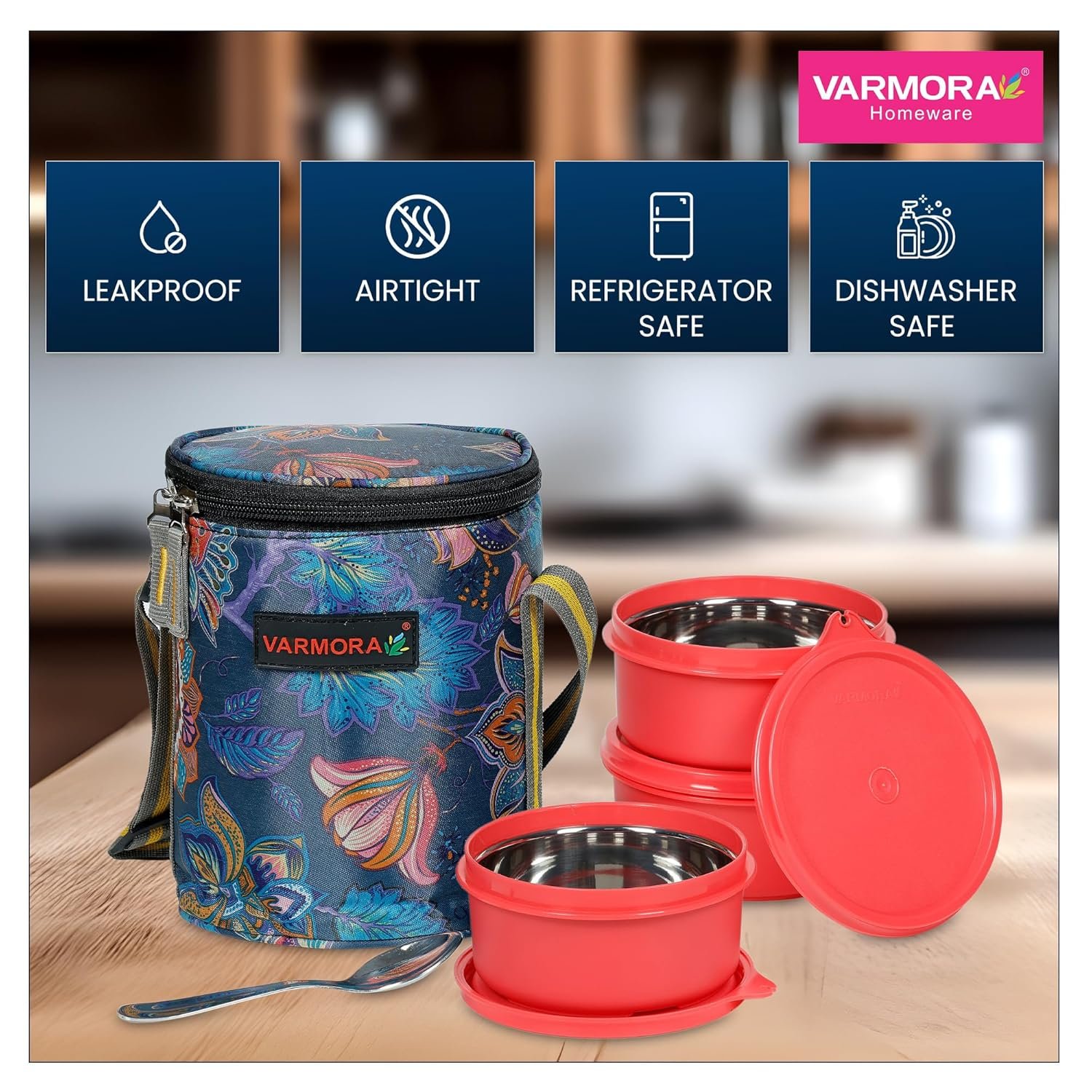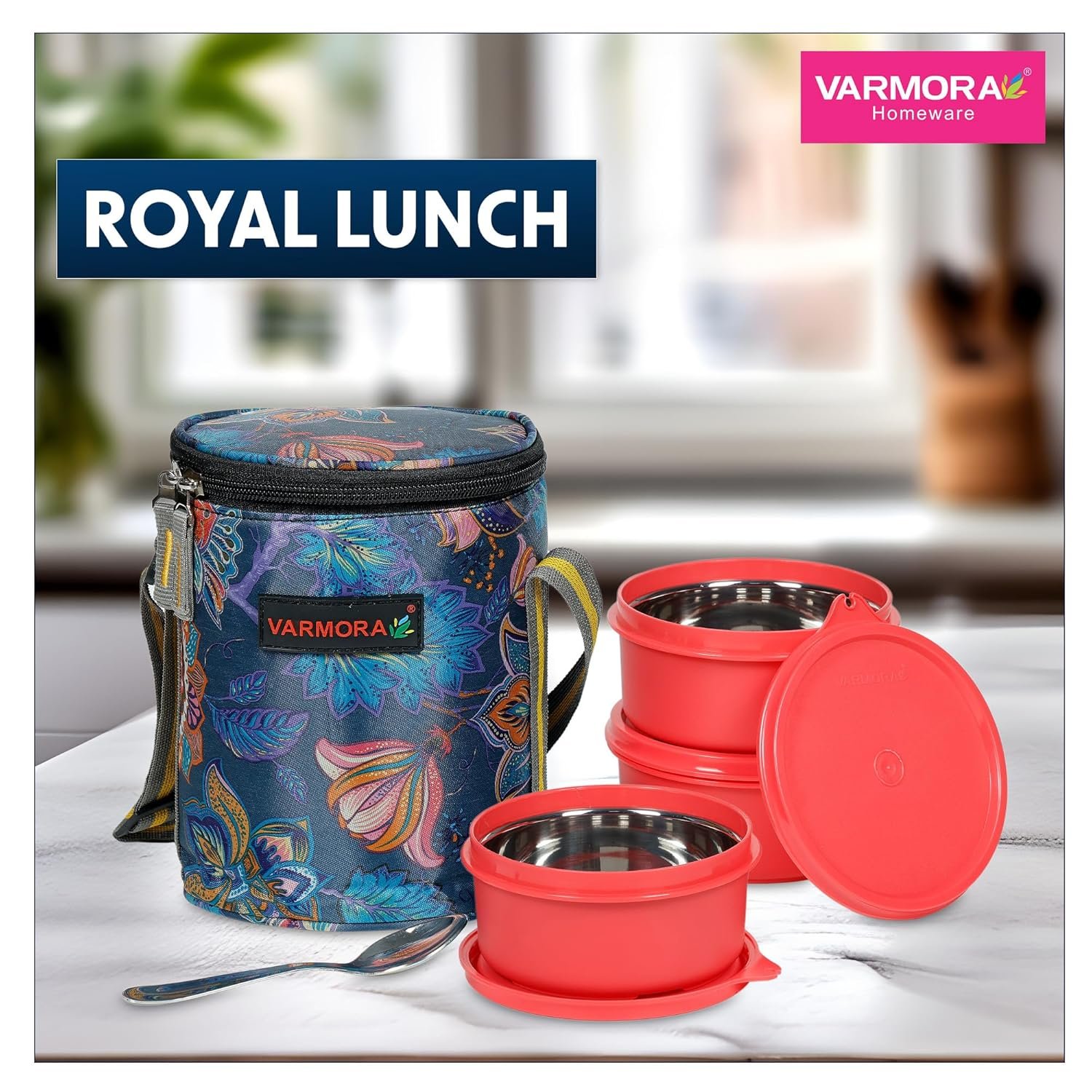 Solution: Introducing the Varmora Royal Lunch Assorted – an Insulated Stainless Steel Tiffin Box for Office that offers a robust answer to these lunchtime dilemmas. This product is meticulously engineered for resilience, featuring containers made from high-quality stainless steel that promise durability and food safety.