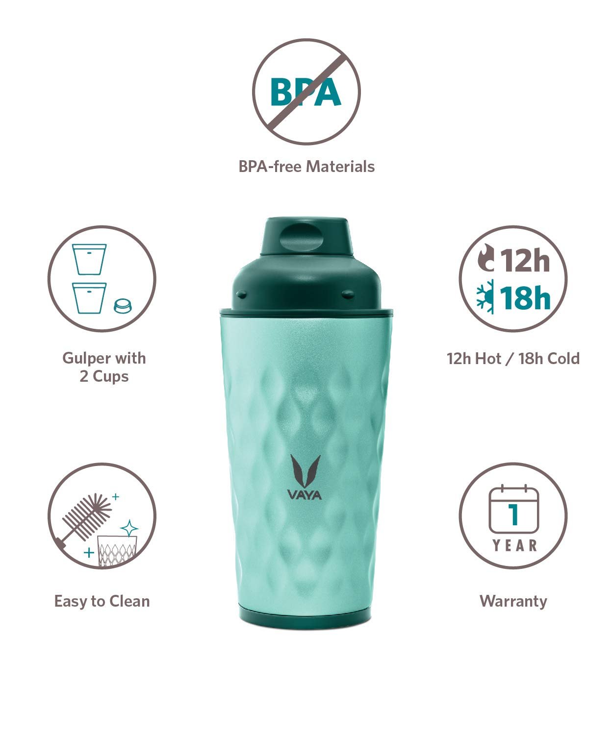 • Superior Insulation with Advanced Technology: Our sipper water bottle is built with double-wall vacuum insulation, providing an airtight seal to lock in the temperature of your drink. Vaya hot and cold water bottle keeps your beverage hot for 12 hours and cold for 18 hours, allowing you to enjoy icy cold drinks after intense workouts or a cup of hot coffee while winter camping.