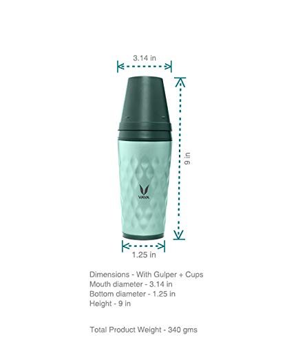 • Premium quality Stainless Steel Water Bottle: Vaya Thermosteel Water Bottle is made of best-in-class materials for drinkware. The plastic components are made with eco-friendly Bio-Copolyester that has high resistance to chemicals and stains. Lids are BPA-free, and FDA certified. The metallic component is made of food-grade stainless steel 304, which has corrosion resistance across standard food product usage conditions. The wide-mouth design of Drynk enables easy loading and cleaning.