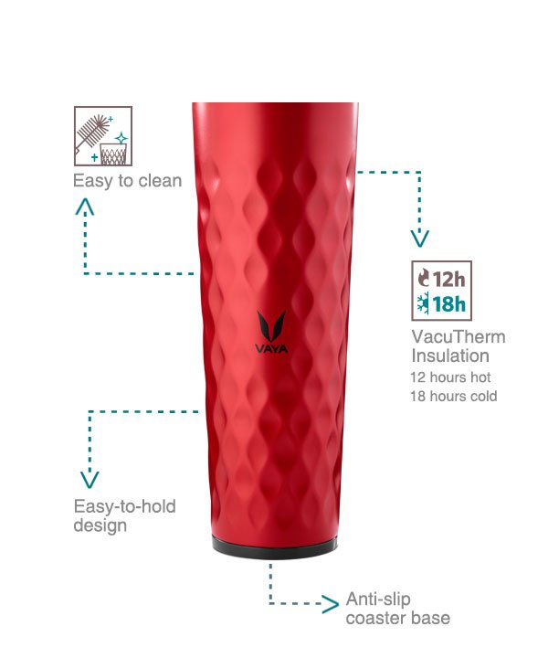 Superior Insulation with Advanced Technology: Our sipper water bottle is built with double-wall vacuum insulation, providing an airtight seal to lock in the temperature of your drink. Vaya hot and cold water bottle keeps your beverage hot for 12 hours and cold for 18 hours, allowing you to enjoy icy cold drinks after intense workouts or a cup of hot coffee while winter camping.