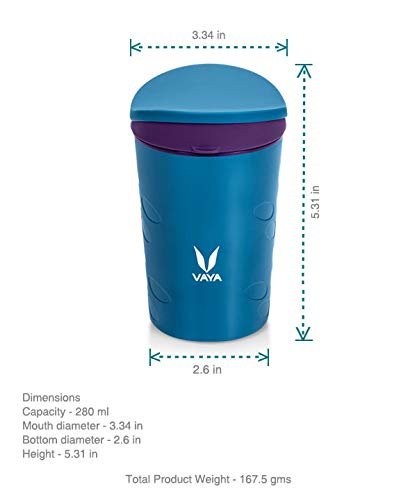 Pediasafe lid:- Vaya’s pediasafe lid is made of the safest, BPA-free and FDA-approved materials. It comes with 3 components – a dust cap that protects the two spout areas, a silicone valve with two-bite areas for sipping and a lid that makes the tumbler spill-proof