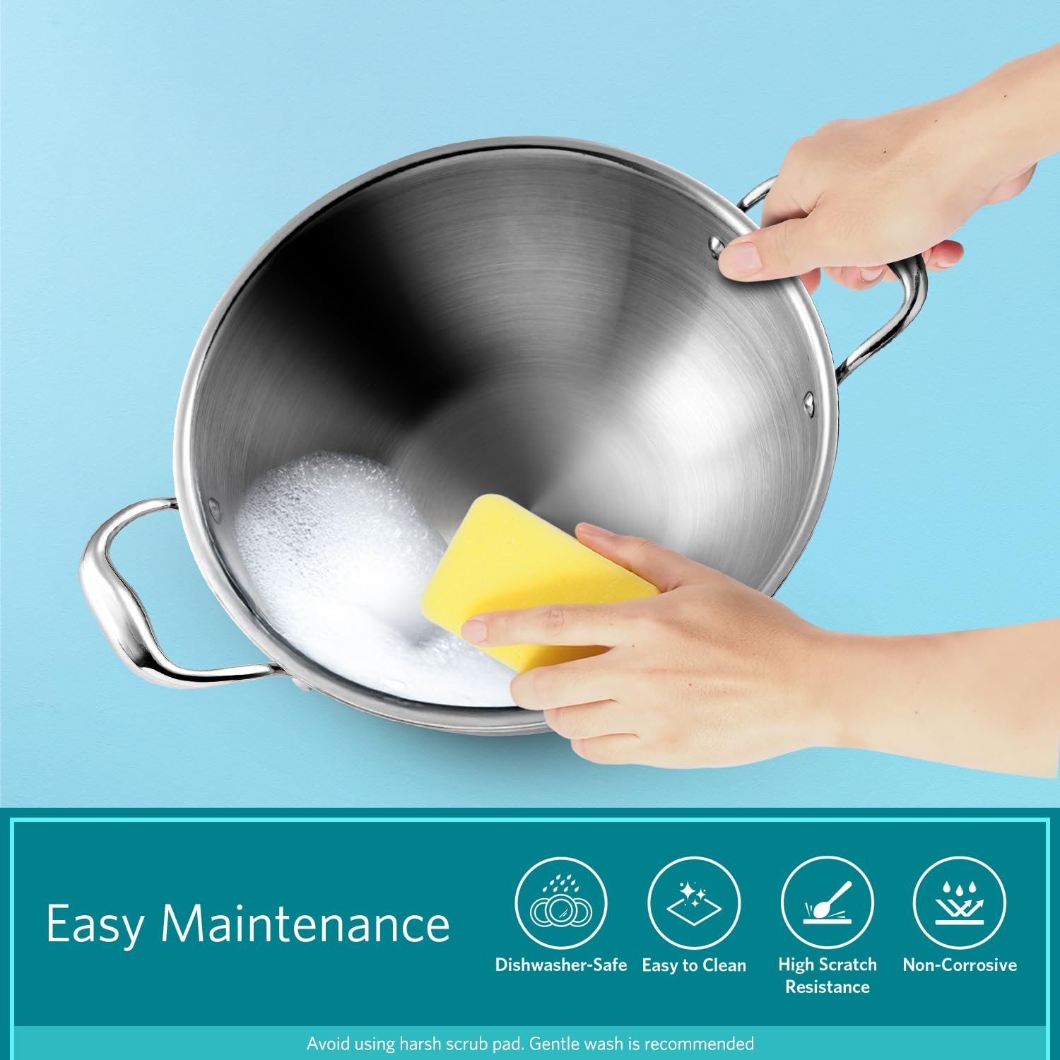 • Tri-Ply Stainless Steel Kadhai for Induction and Gas Stove – Compatible with induction, gas, electric, and ceramic stoves, making it a versatile cooking essential for every kitchen.