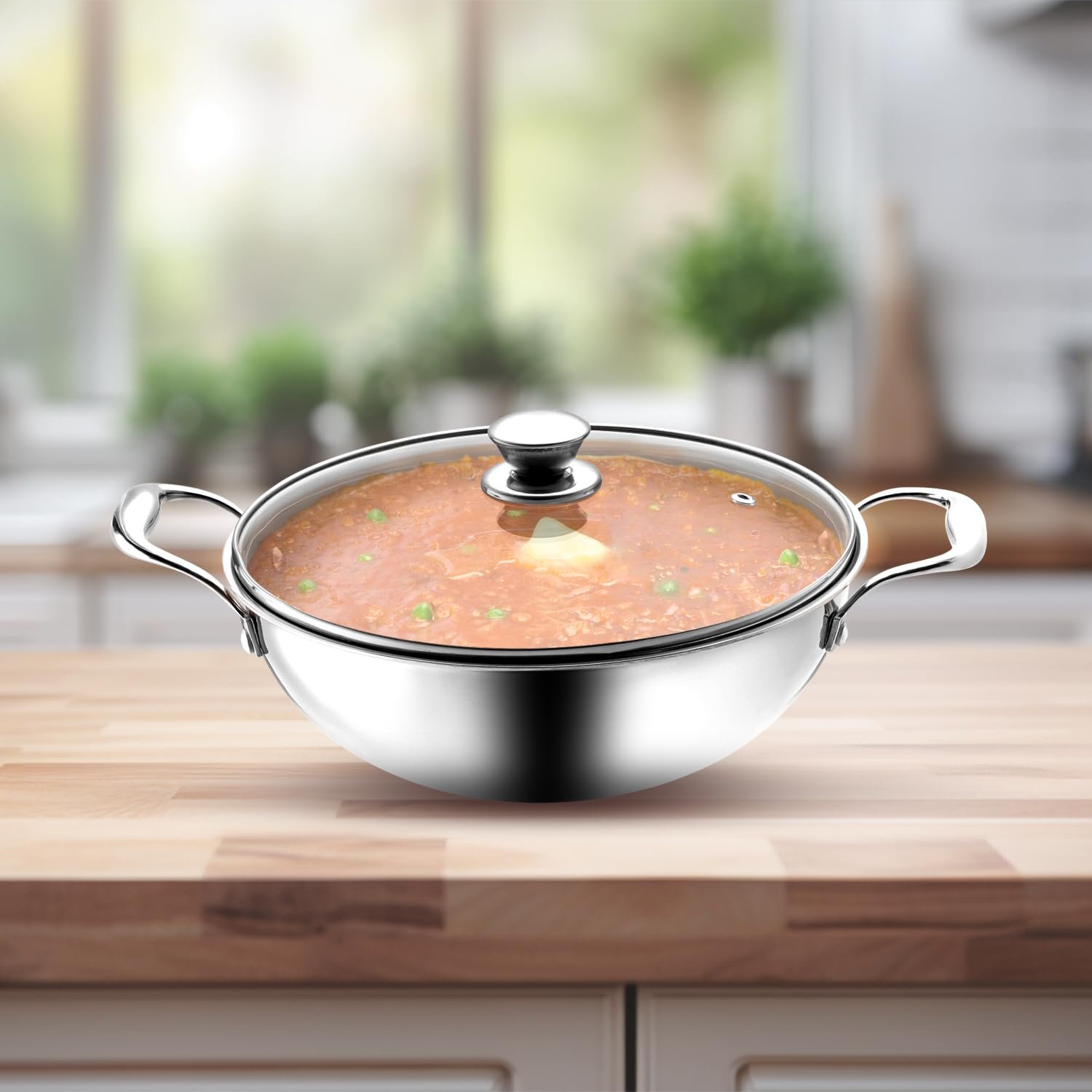 • Triply Kadhai with Lid for Versatile Cooking – The tempered glass lid locks in moisture, preserves nutrients, and allows easy monitoring without lifting the lid.