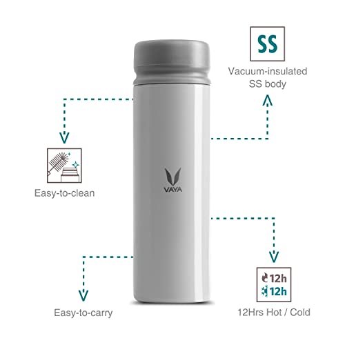 • Premium Quality Material:- Vaya Thermosteel Water Bottle is made of best-in-class materials for drinkware. The plastic components are made with eco-friendly Bio-Copolyester that has high resistance to chemicals & stains. Lids are BPA-free & FDA certified. The metallic component is made of food-grade stainless steel 304, which has corrosion resistance across standard food product usage conditions. The insulated bottle set with a lid is cool to touch even with piping hot beverages in them.