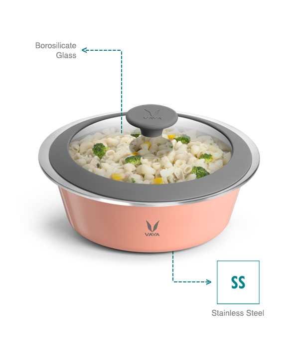 What’s in The Box: – One Casserole Stainless Steel Body, One Glass Lid, Warranty Card, Color: Sandy Coral Material: Stainless Steel; Total Capacity: 1500 ml (1.5 Litres) / Keeps Your Food Fresh & Warm with Advanced Technology: – VAYA HAUTECASE which is a double-walled, vacuum-insulated serving vessel/casserole that keeps the food of your choice warm or cold for 4 to 5 hours*. / Premium Quality: – VAYA HAUTECASE is made of an insulated food grade stainless steel body that comes along with a Glass Lid. The lid is designed to resist damages with a stainless steel bottom and a silicone O-ring. And the Casserole is mad with Anti-slip base / Ready to Serve: – Enjoy fresh food any time with casserole on your Dining, the perfect serving casserole for any special occasions or household like birthday or anniversary parties, holiday, picnic will keep your Soup, Salads, chapati, Roti or any beverages hot and fresh for 4-5 hours*