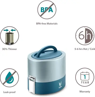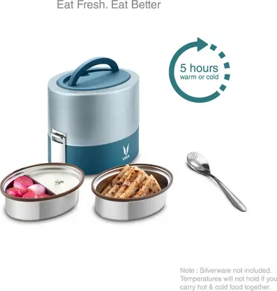What’s In The Box:- Two 300 ml Containers, Two Lids, Two Partitions, Base, a Vacuum Insulated Outer Shell; Colour: Blue;, Material: Stainless Steel, Container: Polished, Shape: Oval, Capacity: 600 ml