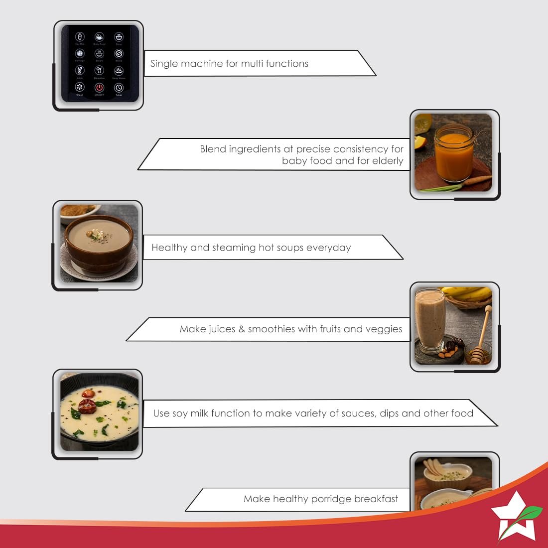 Offering up to 12 preset functions for grinding, mixing, blending, and heating, the Wonderchef Nutri-cook Heater Blender is the ideal choice for any modern kitchen. It is ideal for steaming and keeping the food warm. You can easily select the desired function and set the timer and speed so that this heater blender can start functioning. In addition, it is built with a robust motor that operates at high speeds of up to 24000 RPM to quickly and easily grind and blend even the hard-to-grind ingredients.
