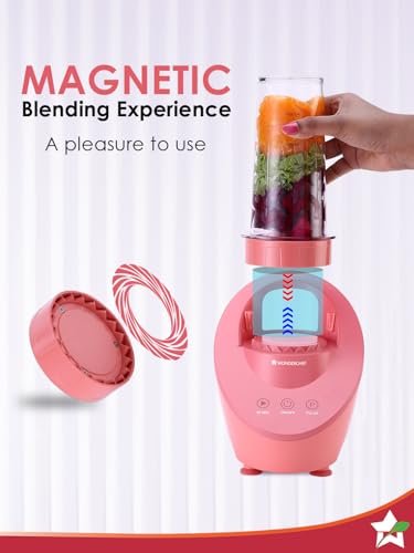 Confluence of Style and Technology: Magneto blender is like none other. It combines magnetic induction technology with stunning looks and functionality to give a perfect blending experience every time. A must for health aficionados who like to take their blends on the go. Safest Blender in the World: Wonderchef Magneto does not have any exposed moving part, making it a safe essential for homes with young children. Even kids can operate it safely. Pleasure to Use: Just put the ingredients in the jar and place it on the blender. Enjoy the feel of the magnetic pull of the base snapping the jar automatically in position and play with its touch sensitive buttons. Automatic Function: The blender comes with a pre-set timing of 60 seconds. It stops automatically, giving you complete freedom to manage other tasks as it blends to perfection. Low-noise: Super sharp stainless steel blades rotate without any coupler. This lowers the noise and avoids any wear & tear, giving a far longer life to the machine. i-Sense Technology: The blender will slow down multiple times during operation to pull the ingredients back on to the blades for better results. No need to open the jar and push them down with a spatula. Portable: Carry your blends in any one of the 2 jars with the Sipper-Lid and have them on-the-go. A perfect match for health enthusiasts. Warranty: Wonderchef products are inspired by Italian Design and adhere to German Quality Standards. They are covered by reliable on – site warranty. T&C apply.