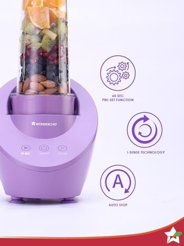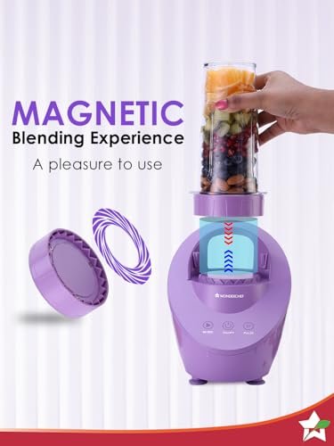 Wonderchef Magneto Blender | Smoothie & Juice Maker | World’s Safest with Magnetic Induction Tech | Variable Speed | Automatic with 60-sec auto-stop | Portable with Sipper Jar | Purple|2-Year Warranty