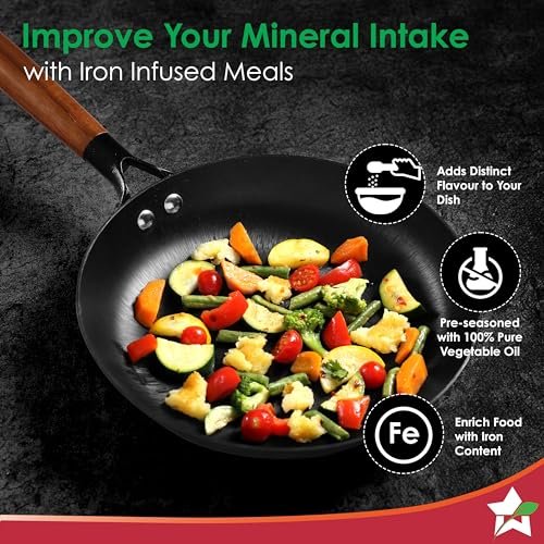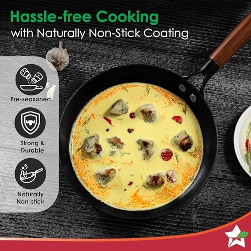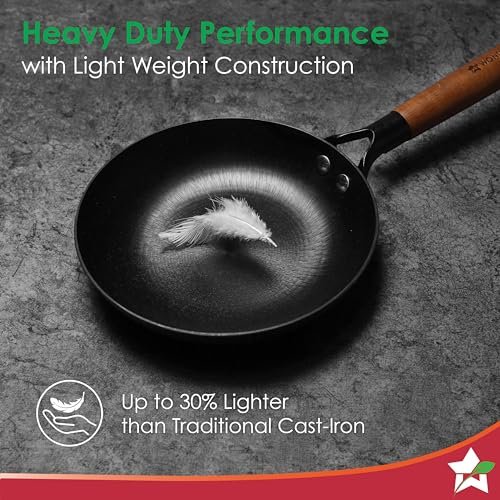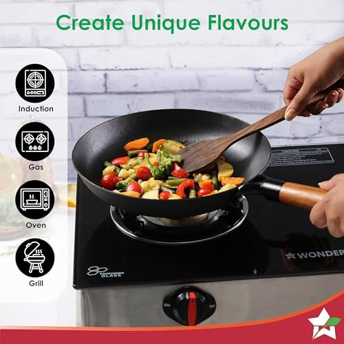 Ferro Light Weight Pre-seasoned Cast-iron Cookware: Healthy cast-iron pans in a lighter, easy-to-use form. With a better finish and superior quality, they elevate your culinary experience with confidence and ease! Gravity Moulding Technology: Ferro pans are made with gravity moulding technology, making them lighter as compared to the much heavier traditional cast iron pans but with equal strength and benefits. Pre-seasoned with 100% Vegetable Oil: This allows direct contact of iron with food so you can get your essential dose of ferrous ions – always a healthy choice for your family! Apply vegetable oil while storing the pans to keep them in pristine condition. Excellent Heat Retention: Cast iron has high heat retention capabilities, ensuring even distribution and consistent temperatures across the cooking surface. Its robust build makes it ideal for heavy-duty cooking. Elegant Acacia Wooden Handles: The handles made from real Acacia wood don’t heat up while cooking and give a strong grip to the pans, making them convenient to use. Ideal for Multiple Cooking Applications: Light weight cast-iron pans are suitable for various cooking techniques such as stir-frying, shallow-frying, roasting, sautéing, grilling, and slow cooking. Make the best omelettes, stir-fried vegetables, dosas, crepes, scrambled eggs, gravies and curries and a lot more. Compatible with Multiple Cooktops: Ferro Cookware is compatible with multiple cooktops like gas stove, induction stove, and electric cooktop. Warranty: Wonderchef products are inspired by Italian Design and adhere to German Quality Standards. These products are covered with a 10-year warranty against cracking/breakage. Warranty doesn’t apply to the handle and rusting of iron.