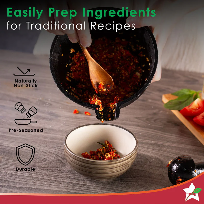 Wonderchef Forza Pre-Seasoned Cast-Iron Mortar & Pestle| Silbatta |Spice, Medicine Grinder Masher| Okhli/Musal/Khalbatta | Ideal for Hand grinder