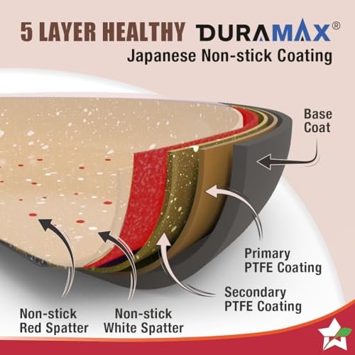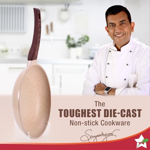 STYLISH COOKWARE – Duralife Die-cast Fry Pan adds elegance to your kitchen with its Ivory colour and wood-finish soft-touch handle, offering a comfortable grip. HEALTHY COOKING MADE EASY – DURAMAX Japanese non-stick coating ensures minimal oil use, excellent abrasion resistance, and is 100% free from PFOA for healthy cooking. NO DEFORMATION – Duralife Die-cast Fry Pan is highly durable, never loses its shape, features a 4mm thick base and rim for higher strength, and retains its original shape even after prolonged use. STRONG & DURABLE – Pure Aluminium cast retains its shape even after being pressed repeatedly by an SUV in a load test, thanks to its special property of Aluminium. When molten Aluminium is poured into a cast and solidified, it turns into concrete. VERSATILE – Cook a variety of dishes with the Fry Pan including fried eggs, pancakes, fish, grilled cheese, cutlets, pan fried noodles and more. ENERGY-EFFICIENT – Pure grade virgin aluminium offers 9 times better heat conduction, cooking your meals faster while saving energy and time. COMPATIBLE WITH ALL COOKING SURFACES – Use on gas cooktops, hot plates, infrared cooktops, and ceramic cooktops for maximum flexibility in your kitchen.