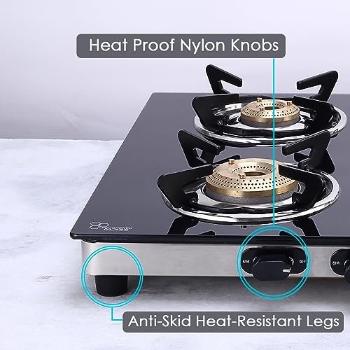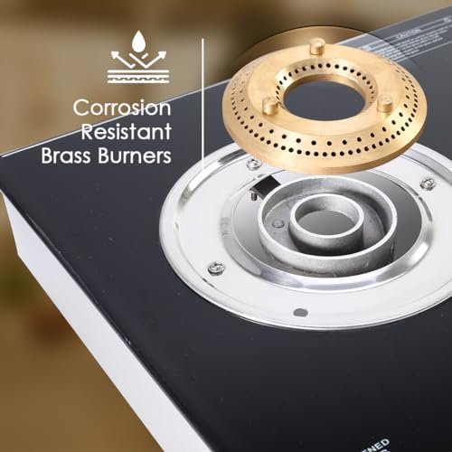 SUITS ALL TYPES OF KITCHENS: Duralife Slim Cooktop has a slender and compact body, designed to suit all types of kitchens. 6MM TOUGHENED GLASS: The cooktop is constructed with a BIS approved 6mm thick toughened glass surface, ensuring durability and resistance to heat and impact. This cooktop provides extra space for cooking on larger vessels. STUNNING LOOKS: The glass, with a sleek and modern stainless steel frame, adds an aesthetic appeal to your kitchen space, complementing various kitchen decors and styles. LARGE TRI-PIN BRASS BURNERS: The burners are made of high-quality brass, and designed with a tri-pin configuration, offering efficient heat distribution and uniform cooking. SAFE PERFORMANCE: The brass gas valves are meticulously engineered for safe and consistent performance. HASSLE-FREE CLEANING: A stainless steel drip tray is incorporated into the cooktop design to catch spills and drips, making cleaning easier and keeping the cooktop surface clean and free from stains. HIGH STABILITY: The cooktop features heavy-duty pan supports to provide stability and support for various cookware sizes and weights. These supports ensure even heat distribution and prevent accidental tipping of pots and pans.
