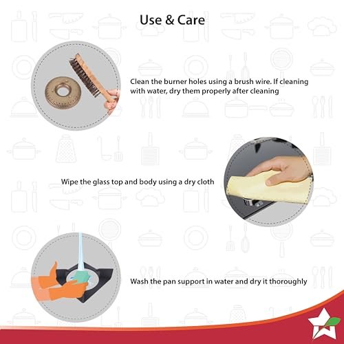 VERSATILE COOKING – Hob Top equipped with 3 heavy Forged Brass Burners (1 Big, 1 Medium, 1 Small) cater to diverse cooking requirements, providing the right heat for every dish. EASY TO CLEAN – 8mm thick toughened glass is scratch and stain resistant, ensuring effortless cleaning. Its sleek all-black color enhances the beauty of your modern kitchen. ERGONOMIC DESIGN – The ergonomically designed metal knobs make operation easy on your fingers, adding to the product’s beauty and elegance. Frontal knob placement offers the best layout and space management. STABILITY AND DURABILITY – Smart Lock Pan feature prevents wobbling of cooking utensils, ensuring stability. The stainless-steel spill tray minimizes rusting, requires low maintenance, and facilitates efficient cleaning. RUST-FREE PERFORMANCE – Cast aluminium mixing tube prevents rust and ensures unobstructed LPG flow, guaranteeing smooth functioning. The skid-proof feature of the hob-top ensures stability and a strong, well-balanced cooking surface.