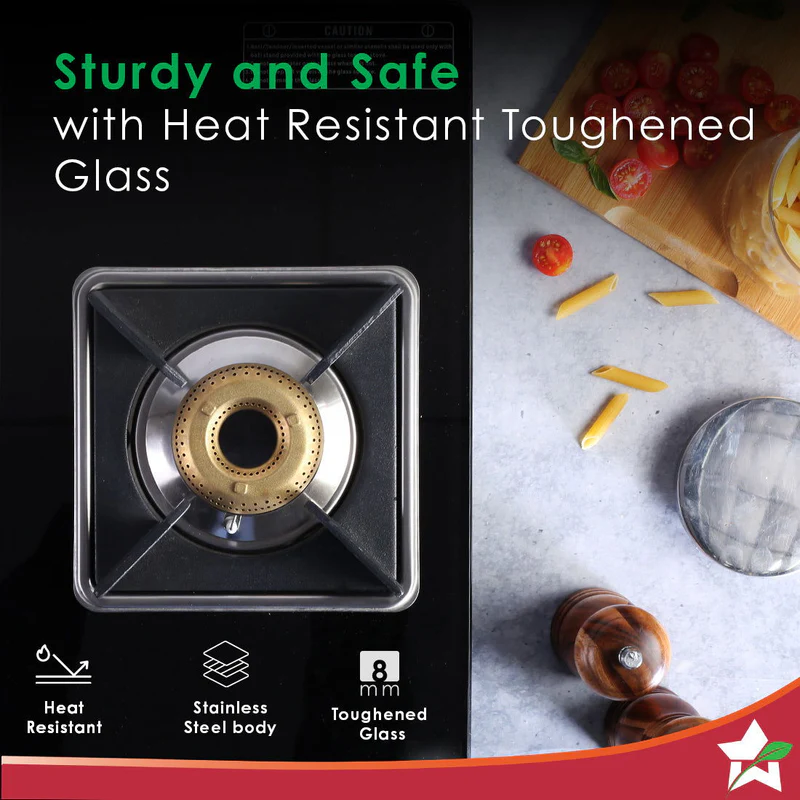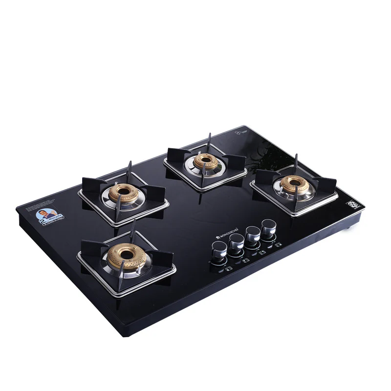 Wonderchef Octavia 4 Burner Glass Hob Top Manual Cooktop | 8mm Toughened Glass | Manual Hob Top | Manual Ignition | Forged Brass Burners | Stainless Steel Drip Tray | Anti-Skid Legs | Large & Heavy Pan support | LPG compatible | Black steel frame | 2 Year Warranty | Black