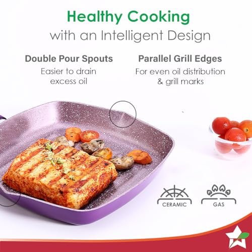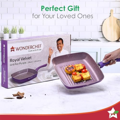 • AESTHETIC DELIGHT – Elevate your kitchen decor with the sleek, stylish design and Regal Purple colour of the Wonderchef Royal Velvet Grill pan that complements your kitchen and enhances your cooking experience.